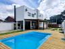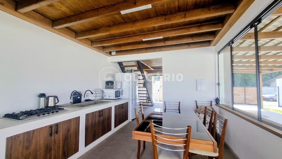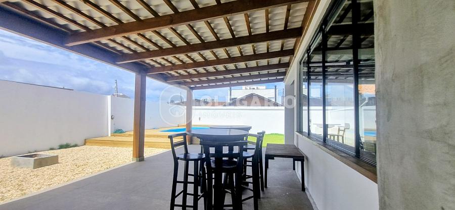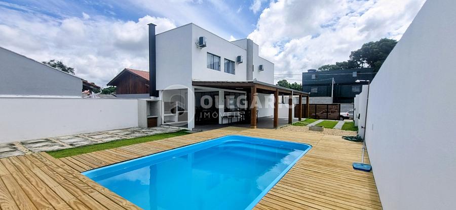 Sobrado com aproximadamente 152 m² de área construída, no piso superior possui 03 dormitórios, todos com ar condicionado split, 01 banheiro social, e no piso inferior sala e cozinha integradas, 01 banheiro social, área de festa com churrasqueira à carvão, piscina, amplo quintal, 02 vagas de garagem cobertas.