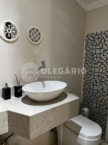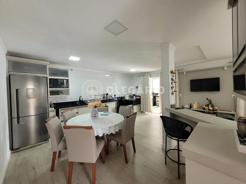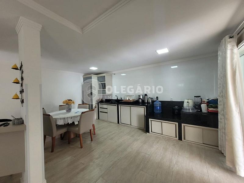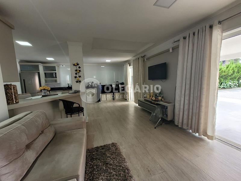 Contendo: living integrado com a cozinha (móveis sob medida) e com fogão a lenha, área de festas com churrasqueira, 04 dormitórios (sendo 01 suíte), 01 lavabo, 02 banheiros sociais, ampla lavanderia com área externa, sala de estar (piso superior), sacada, varanda e 02 vagas de garagem.